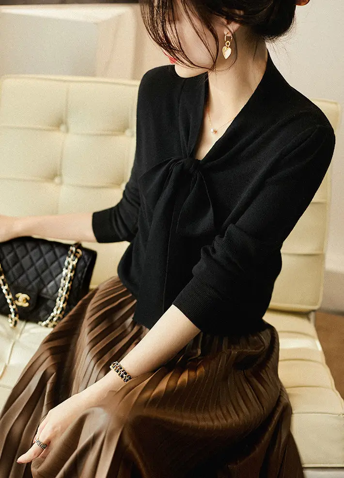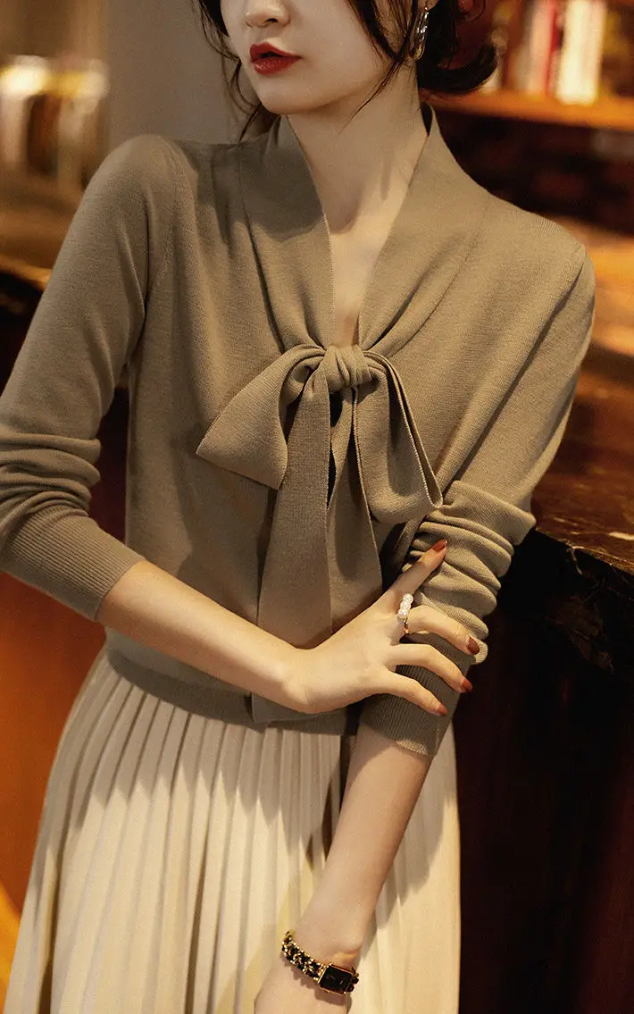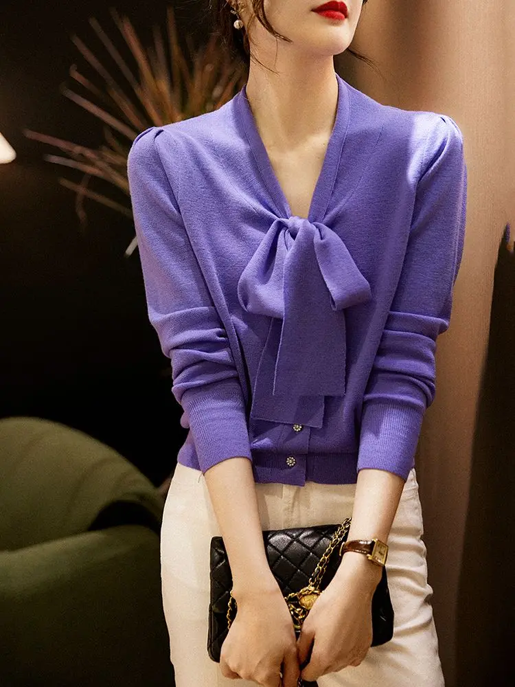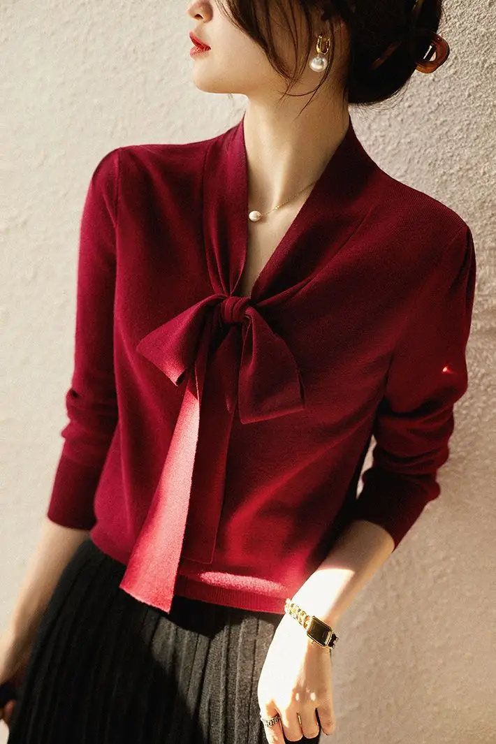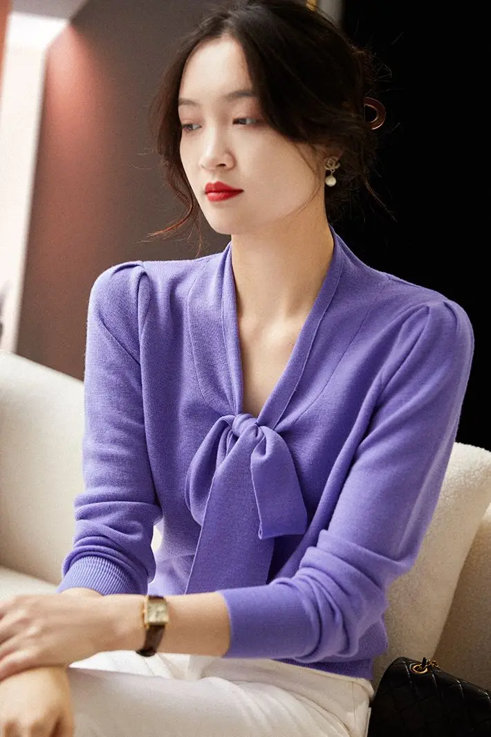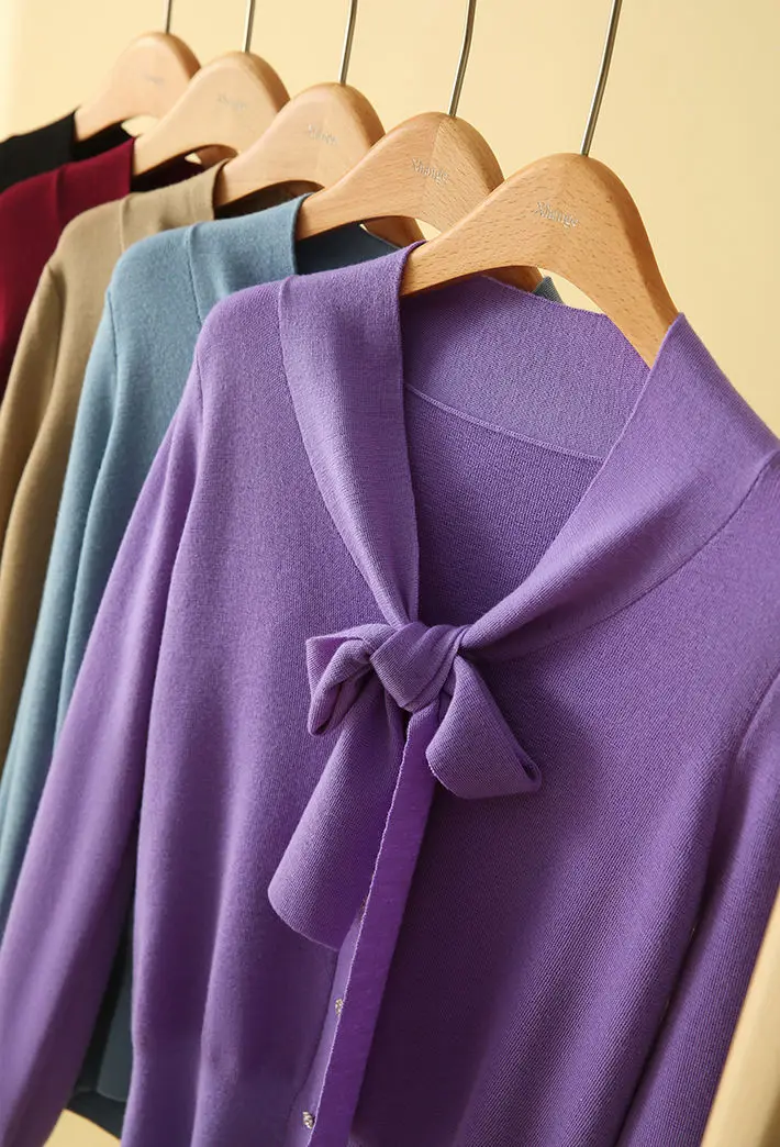 Women Clothing Fashion Elegant Scarf Collar Pullover Autumn Winter Simplicity Cozy Sweater Lady Solid Casual Comfort Knitted
