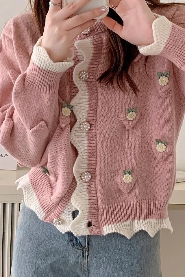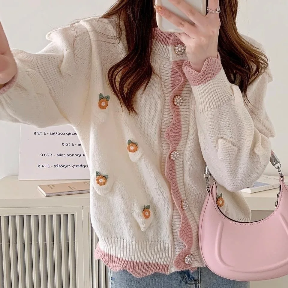 Autumn Winter New Sle Women's Soft Cozy Knitted Cardigan Sweater Sweet 3D Flower Design Versatile Top Coat Korean Commute S...