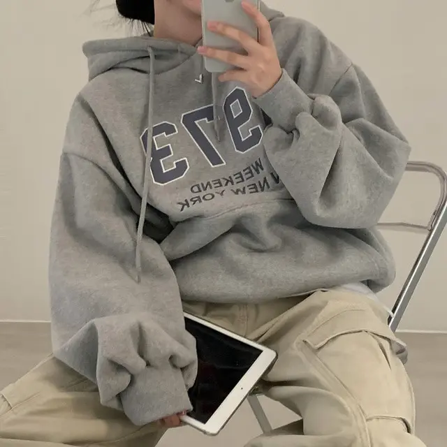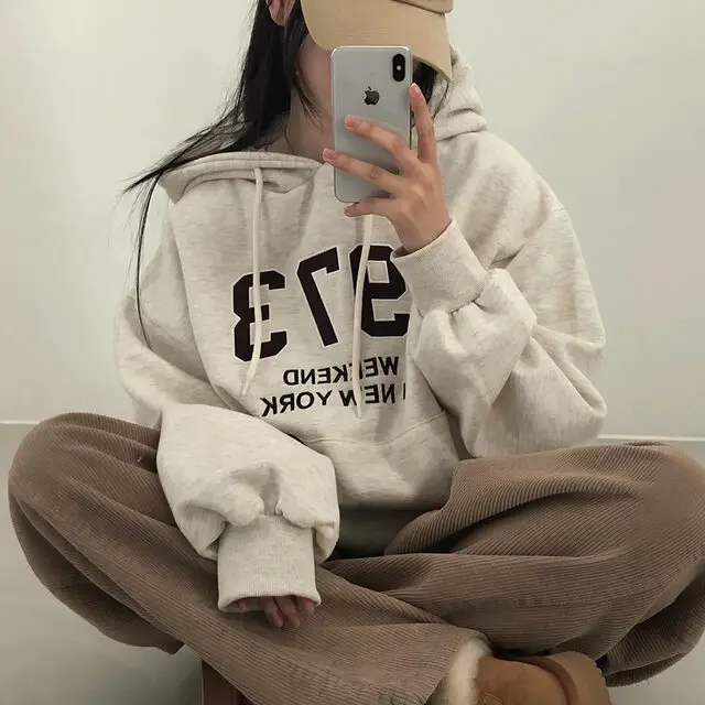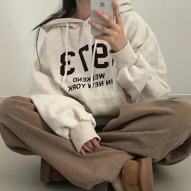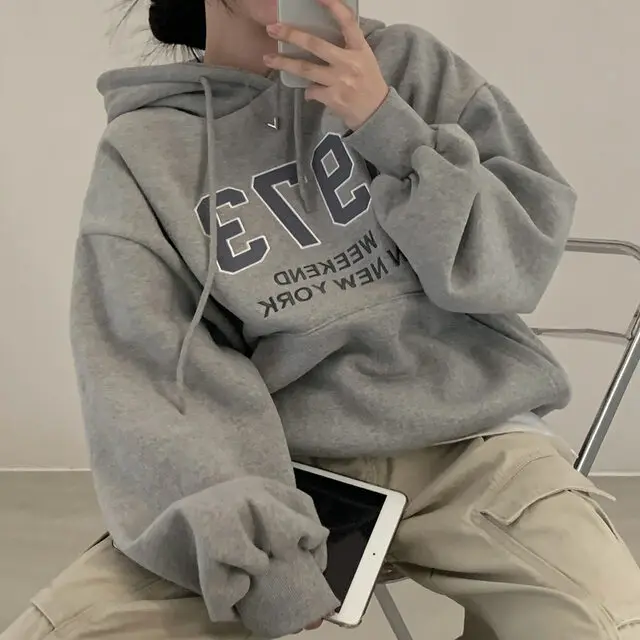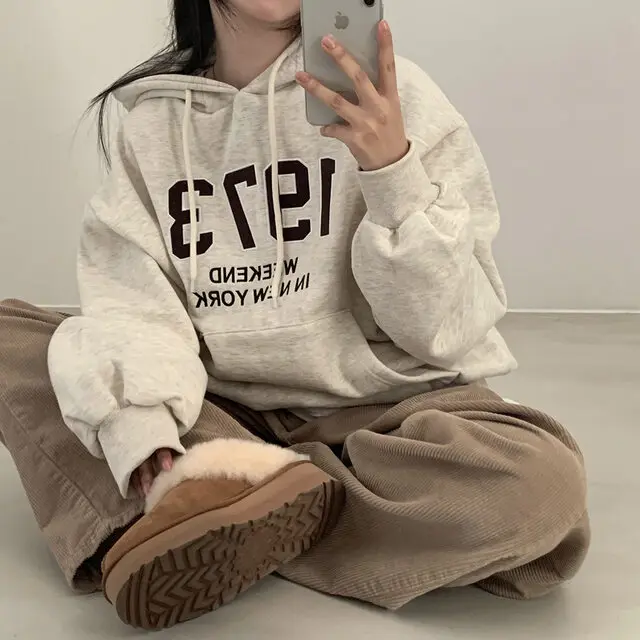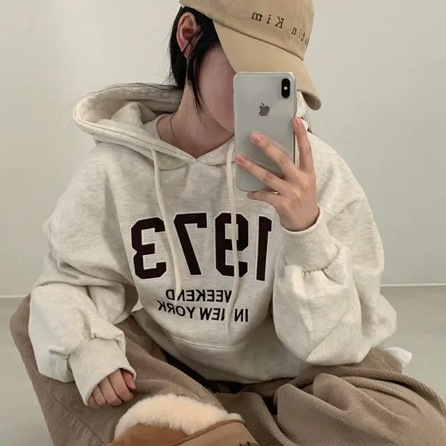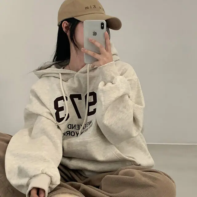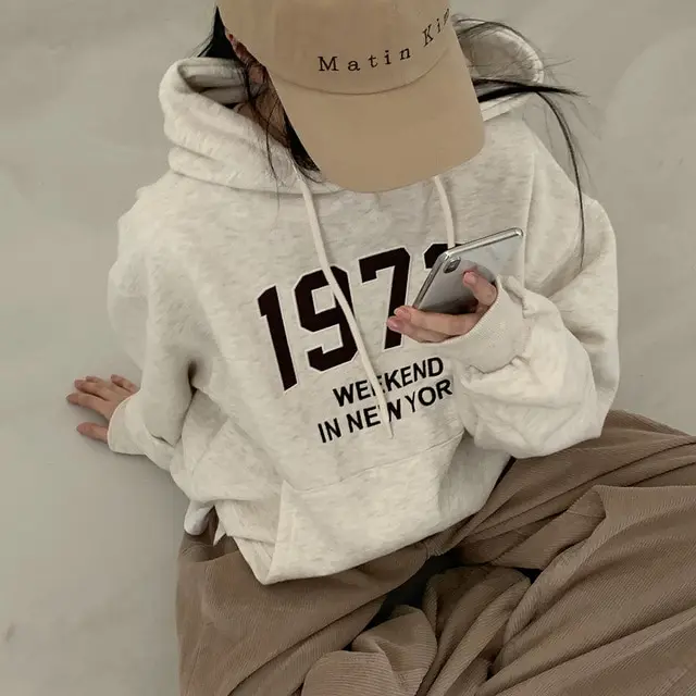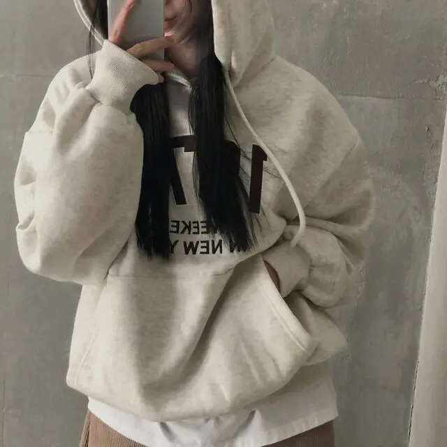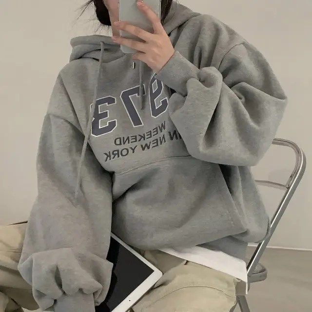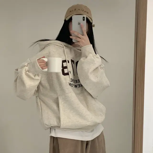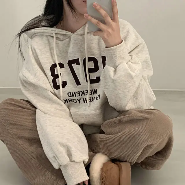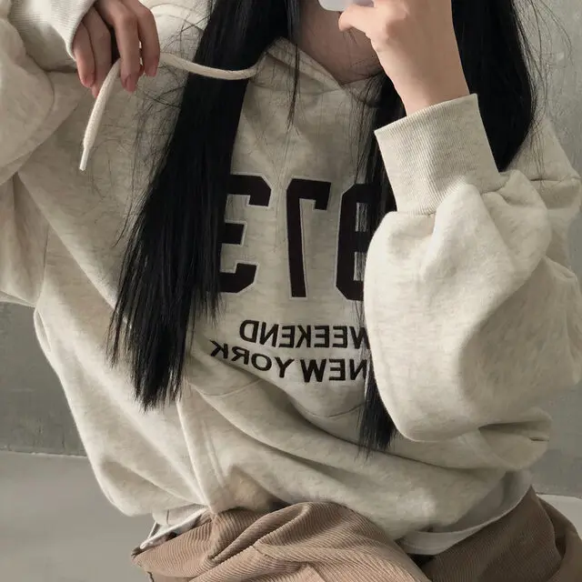 Embrace the latest Korean fashion trend with this chic, lazy French-style long-sleeve hoodie, perfect for the autumn and winter seasons.