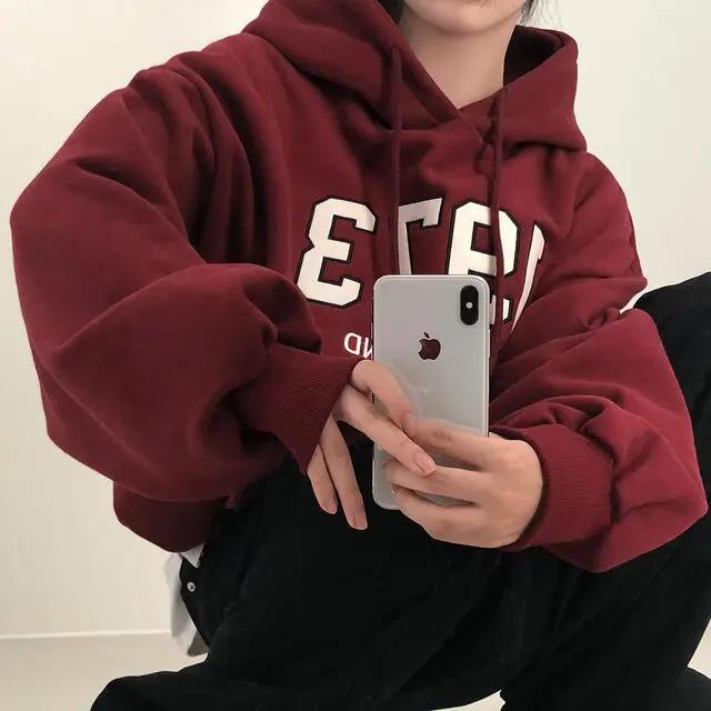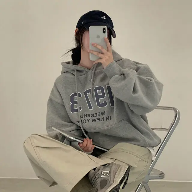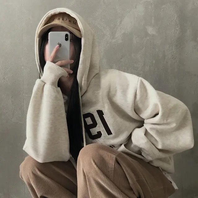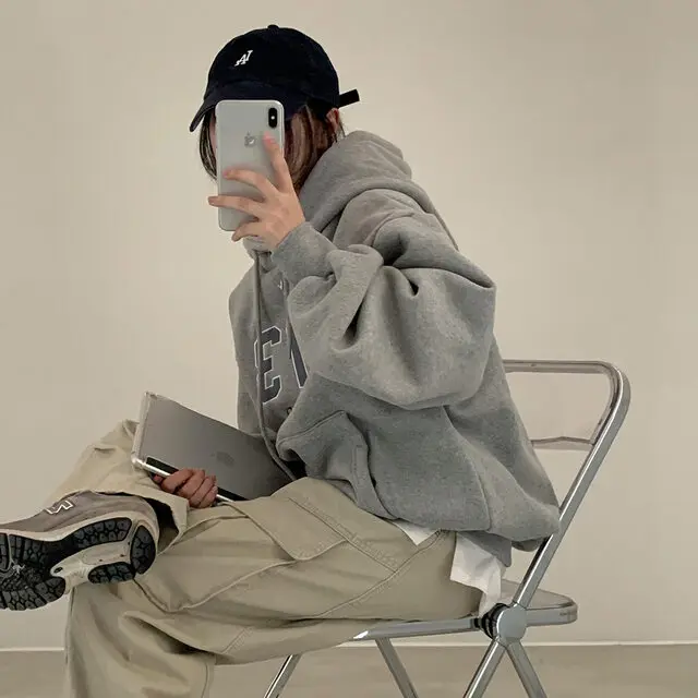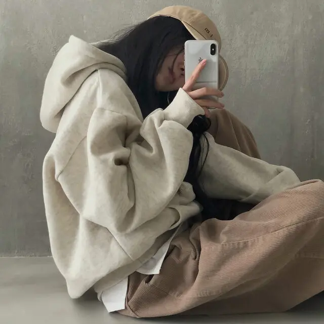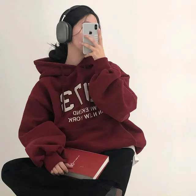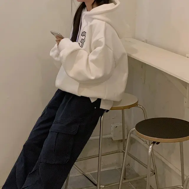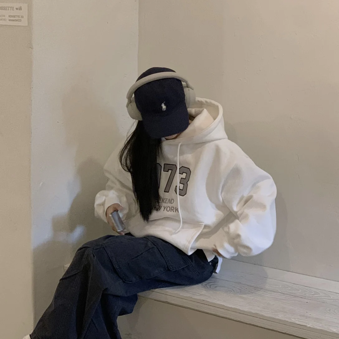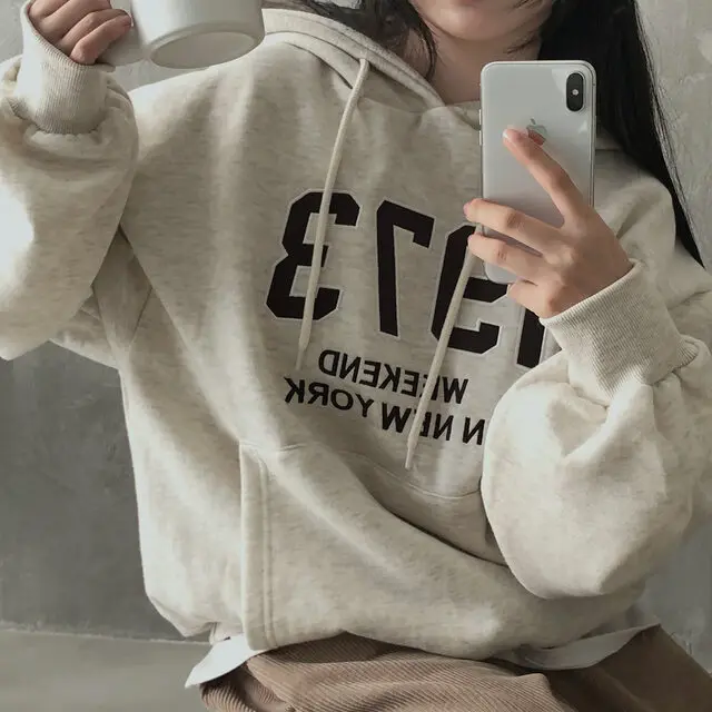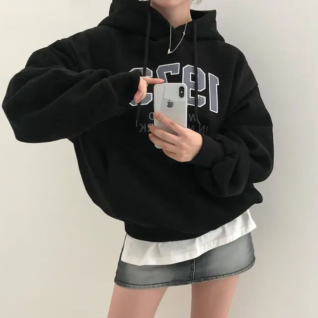 Embrace the latest Korean fashion trend with this chic, lazy French-style long-sleeve hoodie, perfect for the autumn and winter seasons.