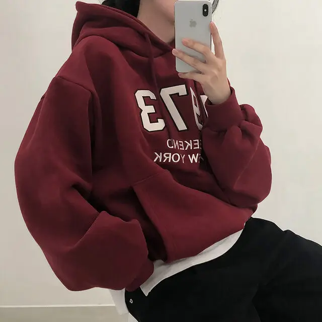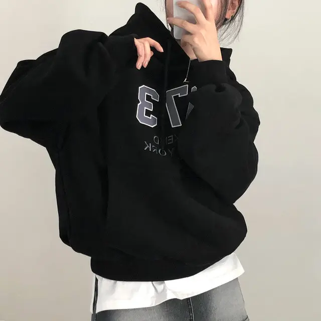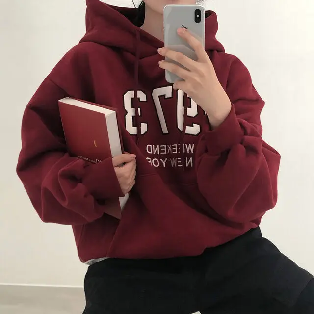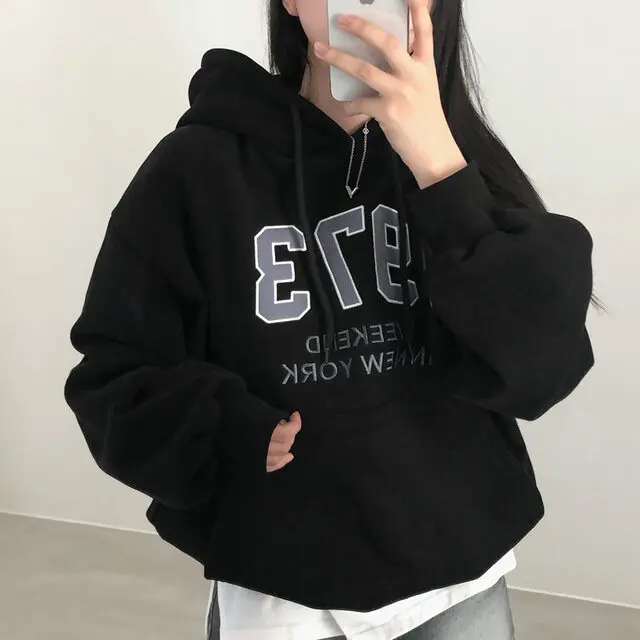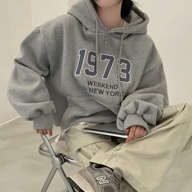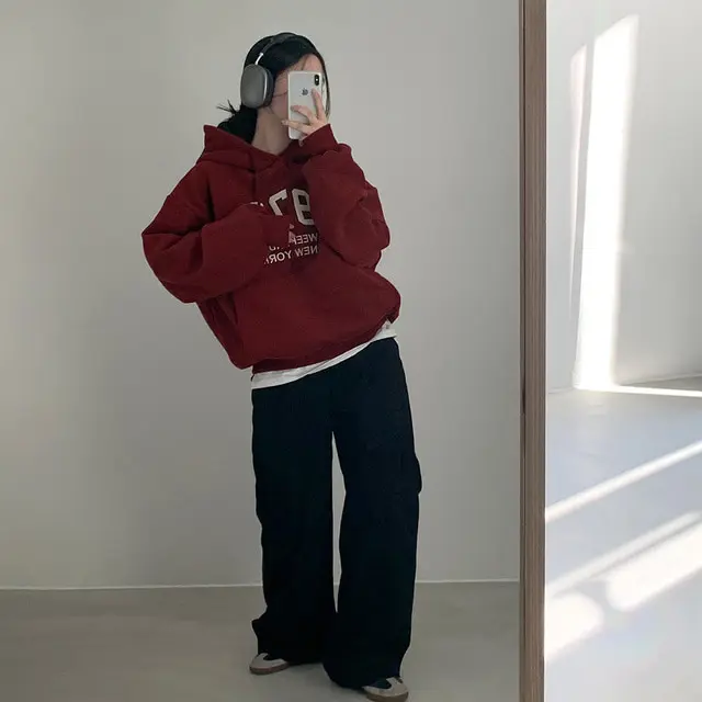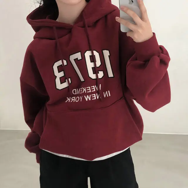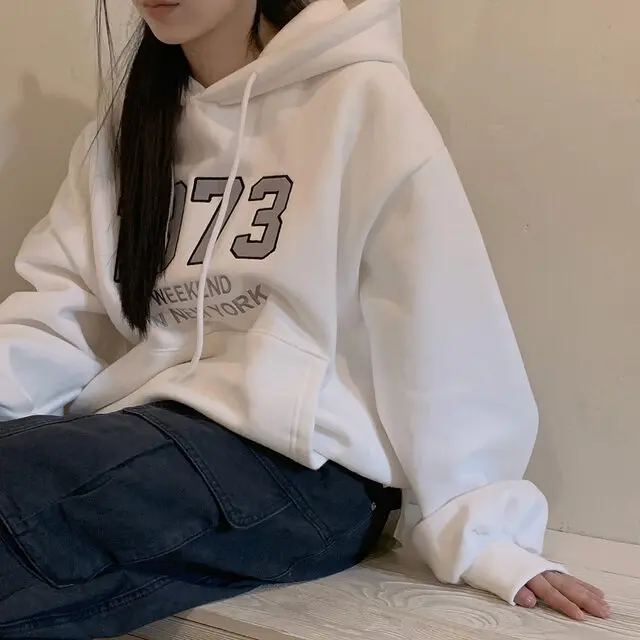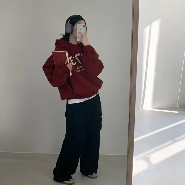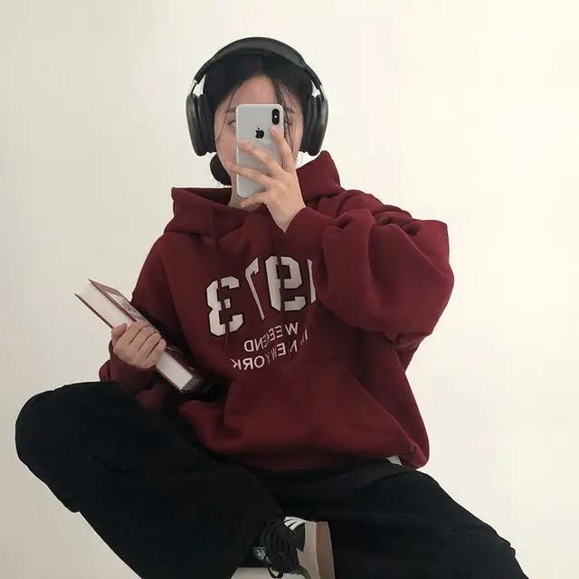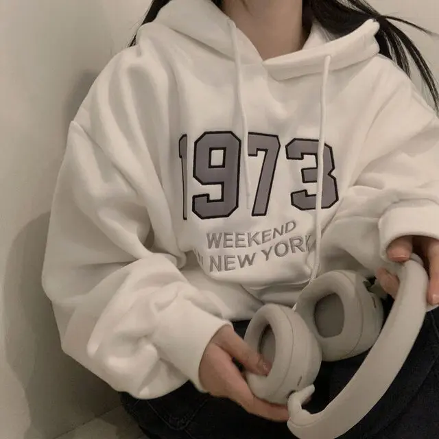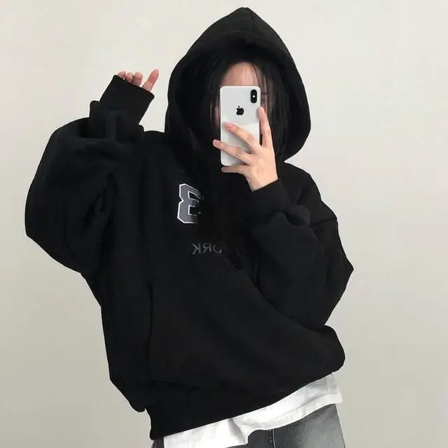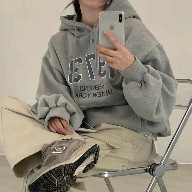Embrace the latest Korean fashion trend with this chic, lazy French-style long-sleeve hoodie, perfect for the autumn and winter seasons.