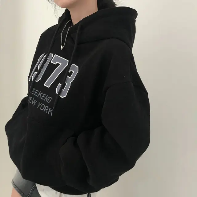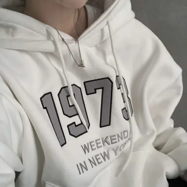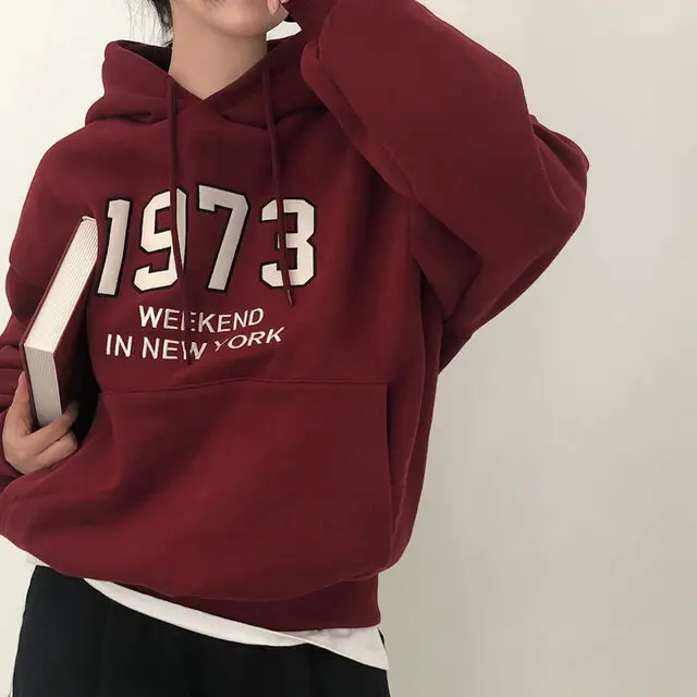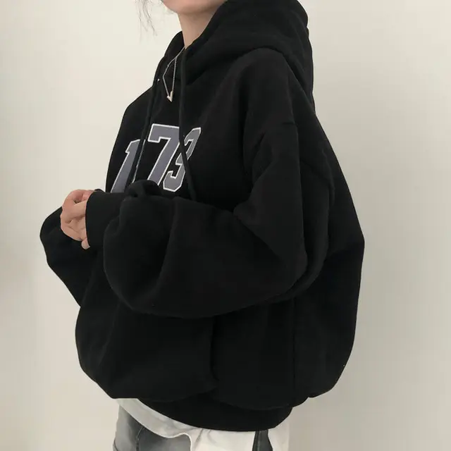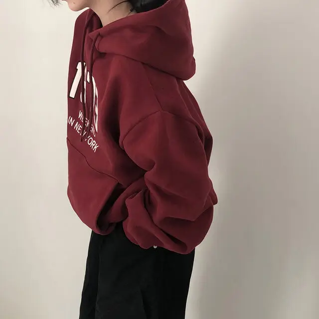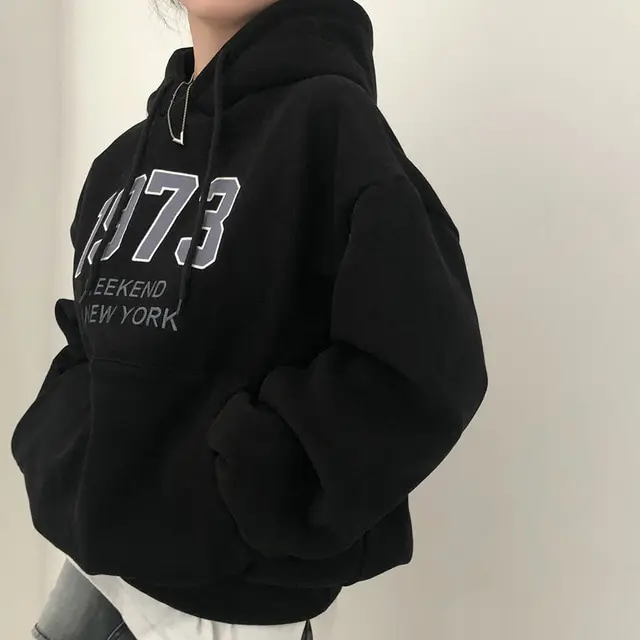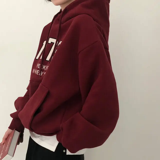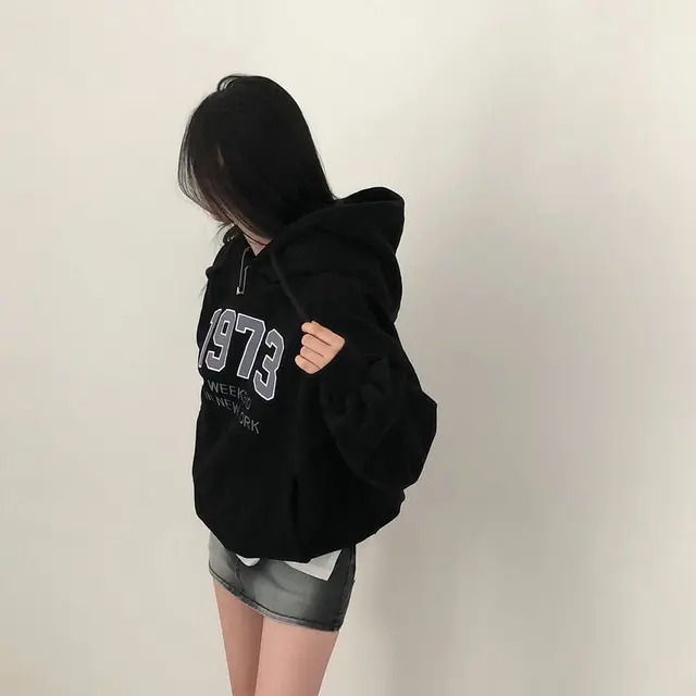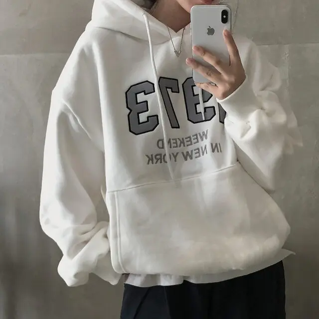 Chic Oversized Hoodie Women's Long Sve Fce Lined Printed Letter Casual Sweatirt Autumn Winter Street Sle Commute