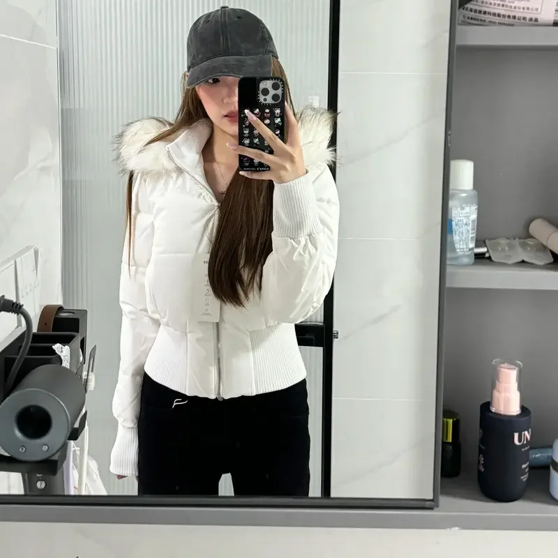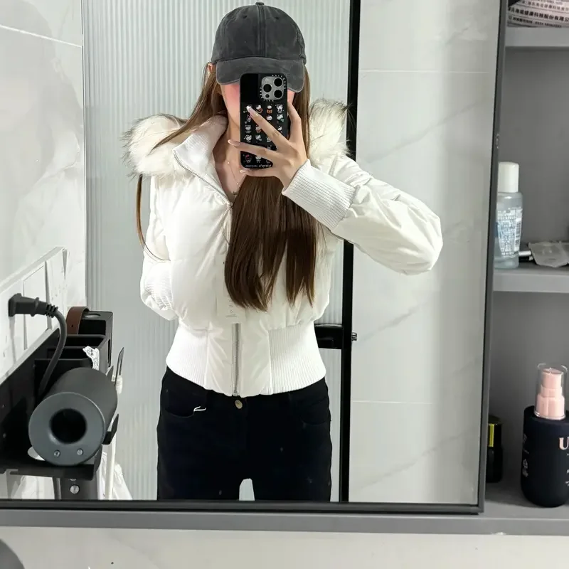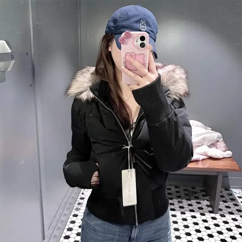 This coat features a laid-back design with a large fur collar, adding a touch of luxury and warmth for the winter season.